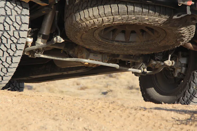 The sway bars and helper springs were noticeable during drives around Johnson Valley, and I can attest to how well they performed since I drove the truck myself once or twice. The vehicle did well over washboards and even some whoop sections, soaking up compression and rebound. Not once did I feel like the truck was on the verge of tipping over; it was always balanced out.