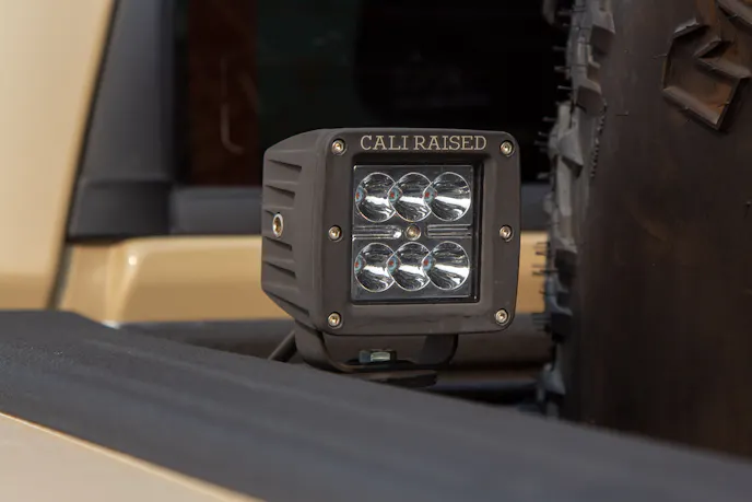 Moving to the Tundra’s exterior, Kyle pointed out several customized touches. His bumpers were SS Built and housed Cali Raised Off Road LED pod lights. These pod lights were also located on the hood and bedsides, giving Kyle plenty of illumination after dark. His headlights were from AlphaRex, while his taillights were from RECON.