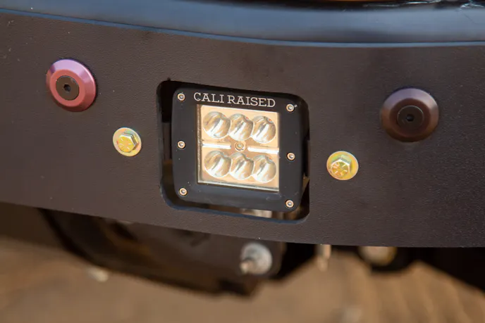The wheels and tires were 17-inch Ultra X103 beadlocks and 38-inch Milestar Patagonia M/Ts, respectively. Elaborating on the tires, Kyle said, “For being an up-and-coming tire company in the off-road market, I’m really happy with them. They run great when aired down in sand, and on-road, they’re fairly quiet.” The wheels, meanwhile, were made from raw aluminum and given a ceramic coating to preserve their appearance. Braking came courtesy of R1 Concepts disc brakes, offering great stopping power.