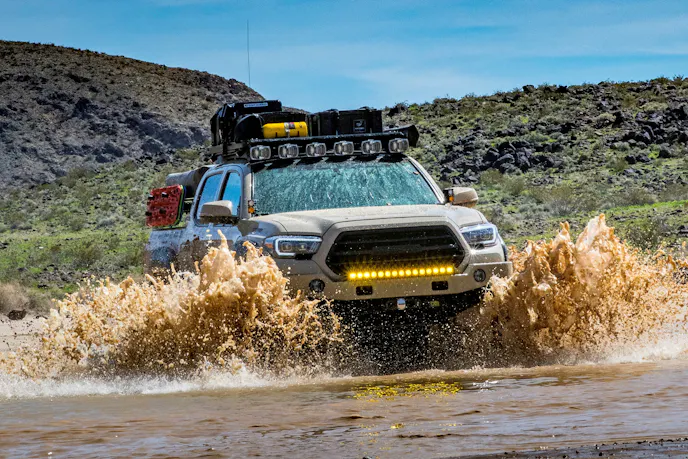 As for some of the aftermarket components on their Toyota Tacoma, the Chacon’s are a huge fan of their AnzoUSA headlights and taillights. While the headlight halo provides a more aggressive look, the taillights feature a really slick light pattern that is super bright as well. Turning toward grappling with good ol’ Mother Earth, the MilkTeacoma rolls on Toyo Open Country R/T tires, which are widely revered for their aggressive tread pattern and renowned longevity. According to the couple, this compound was precisely what they needed, “A great hybrid of all-terrain and mud-terrain tires.”