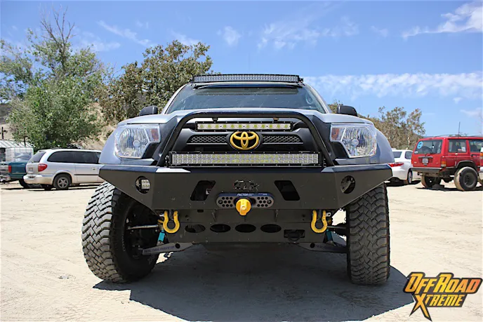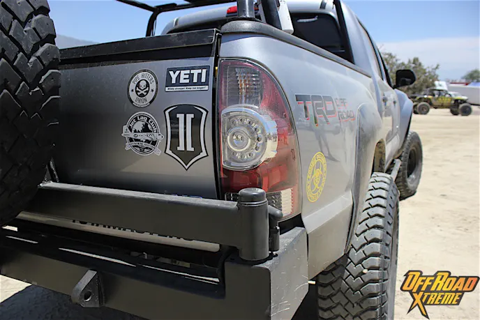 The use and abuse the Tacoma goes through naturally calls for protection. To that end, Chris went with an All-Pro Off Road front APEX bumper and rock sliders. He made a custom rear bumper (with tire carrier) on his own, too. Protection also comes in the form of an Ironman 4×4 7×9-foot awning, which he can assemble and disassemble to provide some shade on the trail.