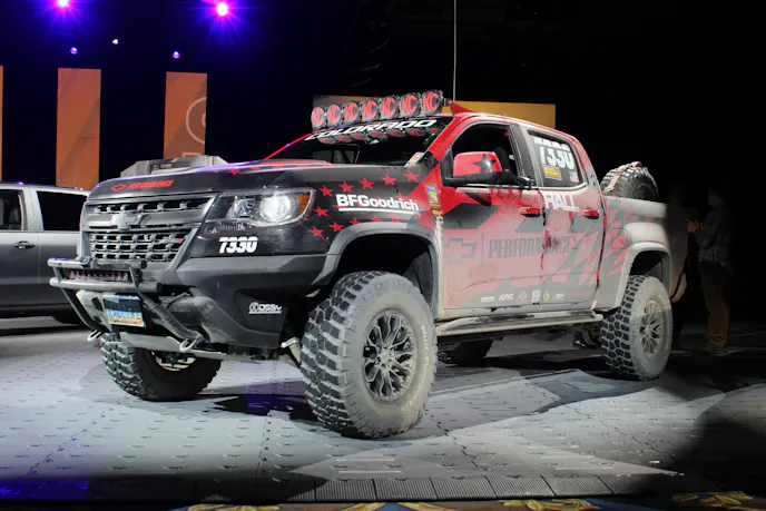 The Colorado Zr2 appeared to have just come from the desert as it was still dawning some dirt. This ZR2 finished and won the 2017 Best in the Desert Vegas to Reno race as the only production pickup truck.