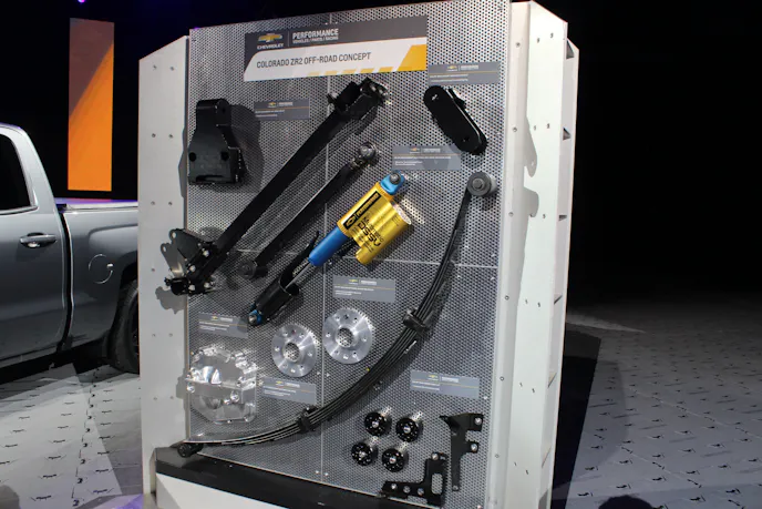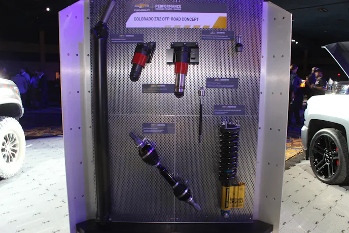 Highlighting the ZR2’s time on stage was the unveiling of the performance parts. “Our team took the production Colorado ZR2 to a new level,” Mark Dickenson explained. “In desert racing ground clearance is everything. We developed a suspension to give the already lifted ZR2 another inch of lift, a 1.5-inch body lift, third-link that acts as an anti-wrap bar for the rear axle, longer Multimatic shocks with tuning that Chad Hall helped with, front and rear jounce shocks, high articulation ball joints, stronger half shafts, and a steel driveshaft all worked together to give the truck the suspension it needed.”