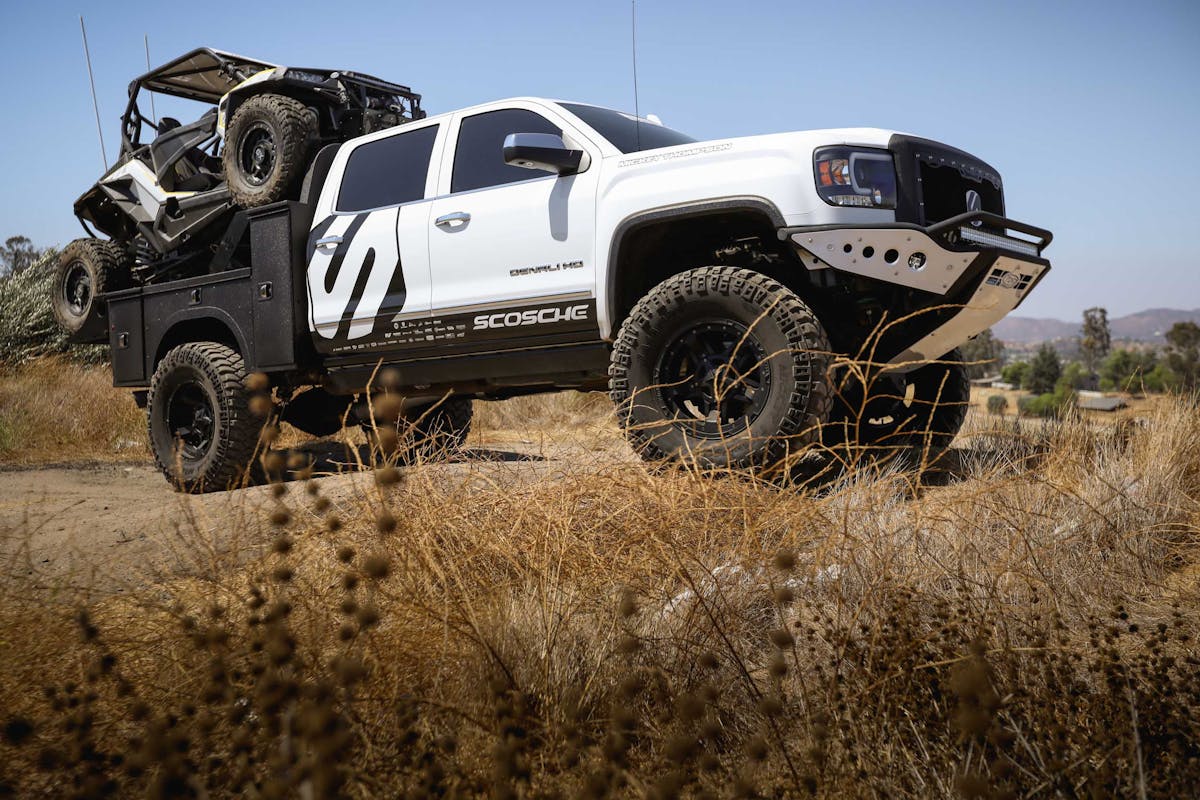 “The vision behind this truck was something that was over-the-top, but also made your life easier,” said Nicholas. “I was in the meeting with Cass Alves, one of the owners of Scosche. I proposed that we use his truck, an $80,000 Denali, and find a way to put a Can-Am Maverick safely on the back. Eventually, he agreed.”