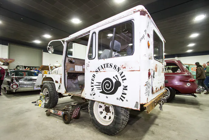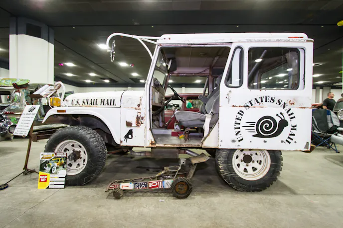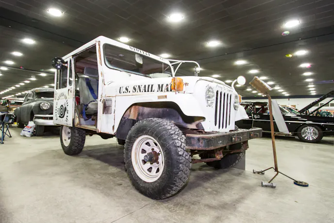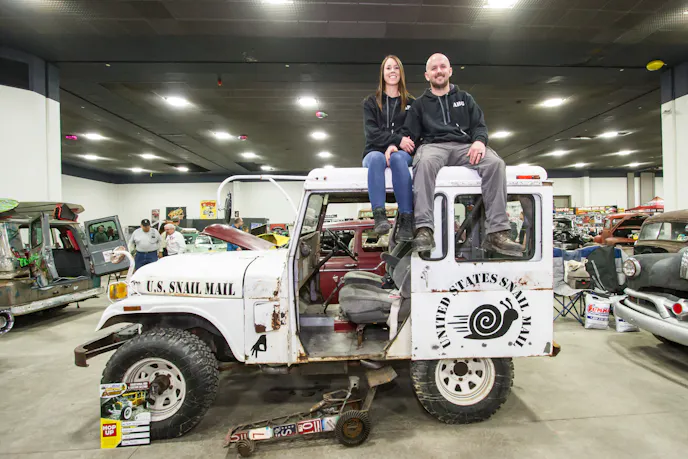 The couple has been to every Detroit Gambler 500, with the exception of 2019 due to Gage’s military deployment. This awesome couple loves to work on projects together, and they pick a new vehicle every year to have fun with. Their Jeep DJ certainly stood out in a sea of high-dollar builds and rods. We had to stop on over and get the lowdown on how this little DJ ended up at Autorama.