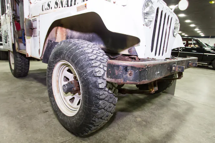 Gage continued, “I’m not a Jeep guy. If you asked me what interchanges on a Ford, I could talk all day. This is all a mystery for me. The nice thing about these is that they are very simple. I didn’t know it at the time, but AMC was the main company that owned AM General. That is the company that built the DJ. AMC uses parts from Ford, Chevy, and Chrysler. It’s like a mismatch of all kinds of parts. It doesn’t matter who you like. There are all different parts on here. Hannah came up with the snail mail idea. Our mail carrier actually loves it!”