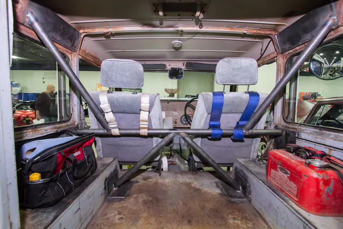Hand-me-down four-point harnesses were sourced to provide a safe environment in the most cost conscious way possible. The couple prefers to stay true to the unofficial rules of the Gambler 500 by staying around $500 for their gambler builds. Sometimes, that leads to interesting challenges, but they are always up to the task.