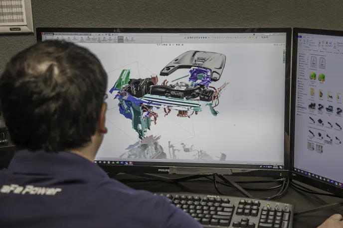 Arriving at the aFe headquarters, I was met by Josh in the lobby, and he promptly showed me around the facility. As we walked, Josh explained to me the process behind designing and manufacturing of the intake and exhaust systems. “It all starts with a scan of the engine bay, and from there we can work up a prototype. The prototypes are then 3-D printed and fitted to the vehicle.” I also learned that the prototypes are initially printed in sections for easier modifications during the tuning process. That dyno tuning is an important differentiator, according to Josh. “The designers will go through several variables, testing for flow and power during the process and make changes as needed,” he said.