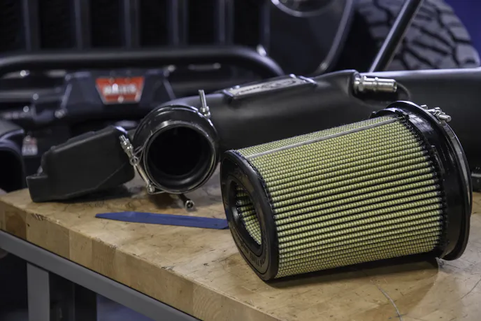 Justin Schultz, the head for the JL project, took the time to go a little deeper into this specific project. “There were a few critical design elements that went into this project; we wanted to maintain an air inlet on the top of the unit to maximize water fording capability,” he said. “We also wanted to keep the final unit to as few separate pieces as possible, which was a challenge.” Justin also explained that the tuning process went through several iterations to ensure the final product delivered the perfect sound signature to match the OE look.Both the increase in airflow and the OEM-like appearance are achieved through a roto-molding process. Roto-molding allows the engineers to create shapes that optimize airflow in ways that can’t be achieved with an aluminum pipe. In addition, the finished unit uses of all factory mount points and hardware, as well as locations for the factory lines and fittings.