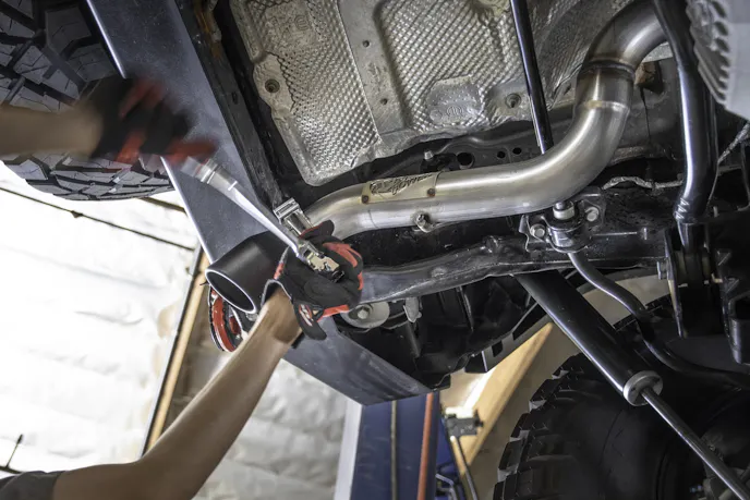 Once on the lift, I got a much better look at all those components. The system is impressive in both looks and ability to maintain clearance, tucking into the factory locations neatly. The cat-back system splits into three separate pieces for ease of installation and utilizes the factory hangers for mounting. According to Josh, the loop relocation kit offers a solution to the suspension clearance issues that arise with the factory exhaust when you increase travel. “We offer a loop delete pipe, but you sacrifice some torque, so we engineered a way to keep the loop and still allow for the extra clearance,” he said. With the Jeep outfitted with its latest parts, it was time to call it a day and prep for an early morning on the trail.