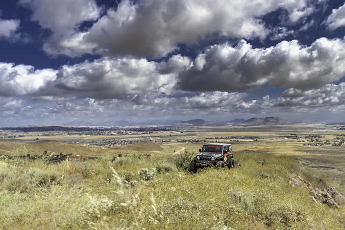 After a strong first impression of the power gains and new voice of the JL, it was time to see how it handled some dirt and rocks. Dagget Creek Path is a moderately challenging trail, featuring more than a few steep inclines and sections of luggage-sized rocks, as it winds its way up and over a pair of Southern California hills. Power delivery was smooth as I crawled up the first sections of the path. With a quick blurp of the fun peddle, the JL easily powered over of a small section of loose rocks and crested a plateau revealing a view of the valley below.