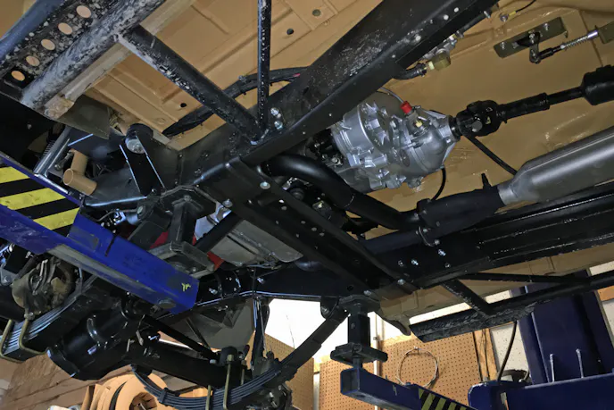 The transfer case is an NP208 with a low-range ratio of 2.72:1. This splits into a rear 1350 driveshaft and front 1310 driveshaft, both made by Tom Wood’s Custom Drive Shafts in Ogden, Utah. The front axle is a Dana 44 that came stock, while the rearend is a GM 14-bolt with semi-floating axles and a 9.5-inch ring gear. “It’s a unique rearend, and it completely dwarfs what came on the stock J-10,” said Chris.