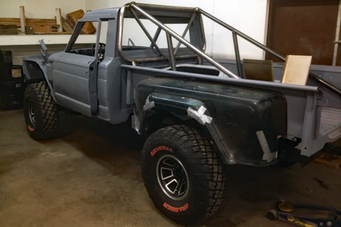 “There was a point in the build, probably about 40 percent of the way through,” he explained. “It was primered and driven around a little bit, and it had taken us about a year at this point. We’d just discovered Polaris RZRs and we were having fun with them, and I have this Jeep truck stuck in my garage, and I think, ‘I’ll just sell it the way it is.'”