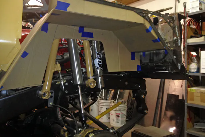 The Honcho was reassembled to a rolling chassis to keep it somewhat mobile. Next, the cab received a cage and went onto the frame. Before long, it had fiberglass fenders, a custom bed, and a drivetrain to do impromptu test drives in.