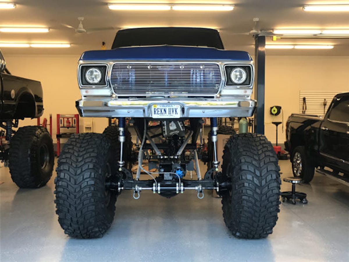 Braking is done by Wilwood four-piston calipers, as opposed to the pinion brakes often seen on monster trucks like Wreakin’ Havoc. Tony went with the former, as he likes the versatility. “The downside of pinion brakes is that they’re off-road only,” he said. “They can’t handle normal driving, or else they get glowing hot. I wanted the F-150 to be more universal than just purpose-built.”