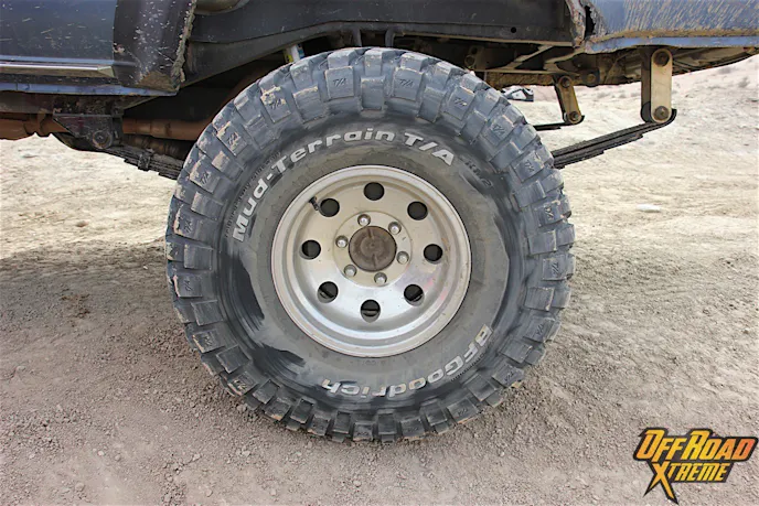 The rear axle is spooled to give it extra traction, with an Eaton Positraction differential in the front. With 5.29:1 gearing, the SUV has the low-end torque to power it up a variety of obstacles, with 15-inch aluminum Eagle wheels and 35-inch BF Goodrich mud terrains taking care of traction.