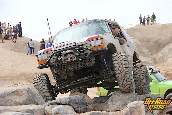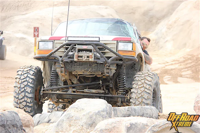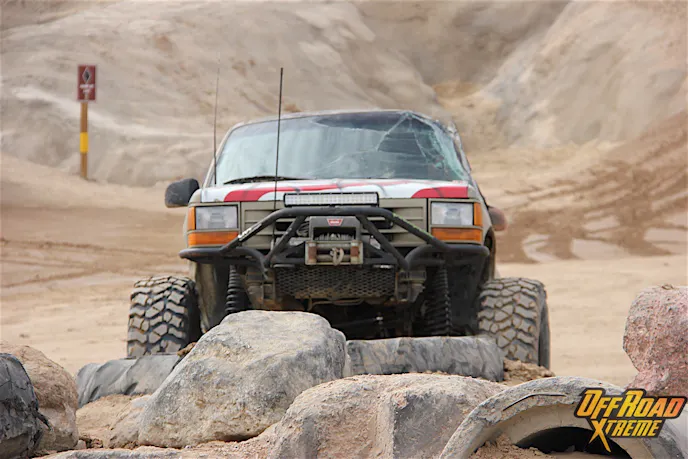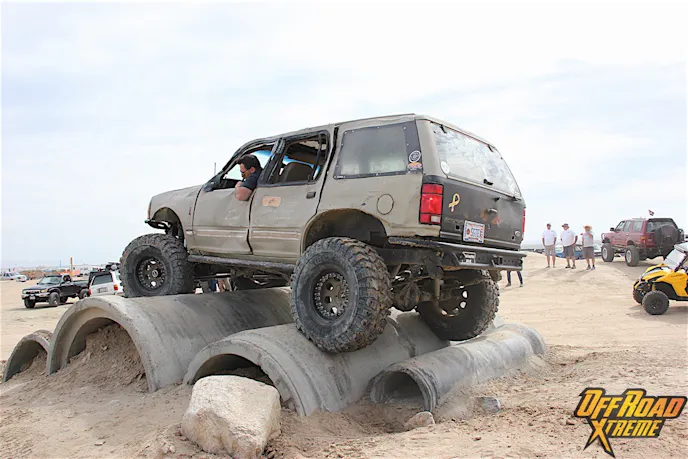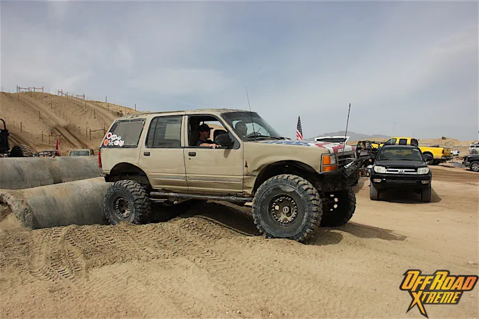 Battered, bruised, but still taking on challenges was Josh Parrish’s 1991 Ford Explorer. We caught sight of the vehicle as it was making its way over some concrete piping, known as the “Leftovers” obstacle there in Truckhaven.