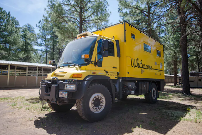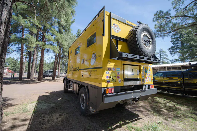 Weighing in at just over 24,000 pounds and over 26 feet long, this rig is massive. Within the overlanding realm, the Unimog chassis is held with a lot of respect and admiration; after all, most of the large campers you see at OEW are mounted to Unimogs (although nowadays, some manufacturers are starting to use Ford F-550s and Ram 5500s for the US market).