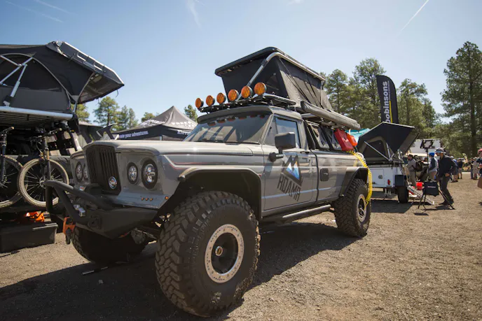 The vehicle that caught our attention was their 1972 International Scout II 4×4. New Legend creates vehicles that keep their vintage looks, but also won’t leave you stranded on the side of the road with a mechanical failure. The International Scout has had a complete mechanical restoration, including the installation of a 5.3-liter LS V8 engine and a 4L65 automatic transmission. Throw a good hardshell roof top tent on it, a cooler or fridge inside, and presto, all your camping needs are met.