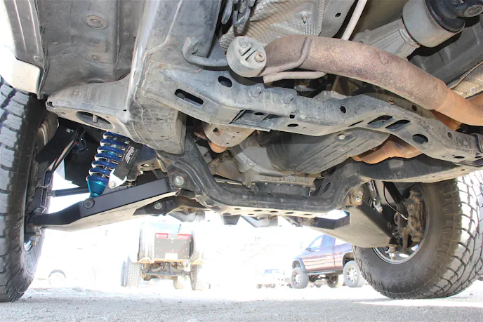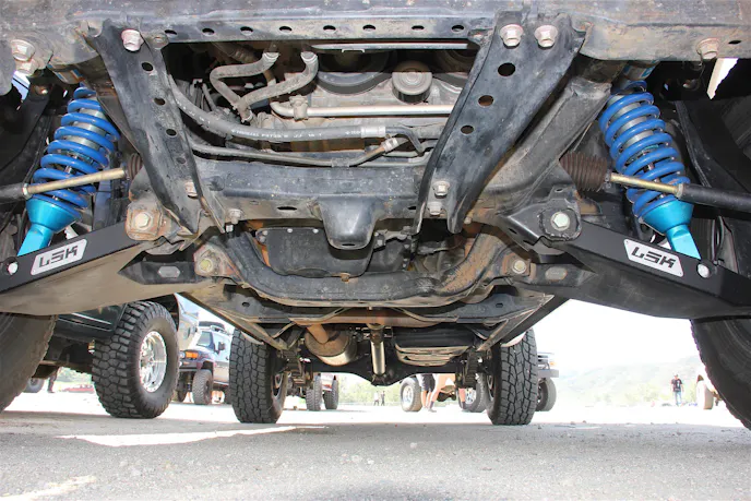 The LSK kit uses a 10-inch coilover and can also use 10-inch bypass shocks, allowing for an impressive 15 inches of travel. The kit also uses uniballs and heims, so there are fewer components that are likely to fail when Travis is driving fast in the desert.