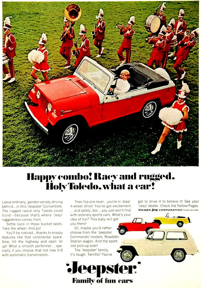 Initially introduced in 1966 (as a 1967 model), the Kaiser Jeep Jeepster Commando was designed to compete with the Toyota Land Cruiser, Ford Bronco and the International Scout. For the Jeepster, four configurations were available, including a station wagon, pickup, convertible and a topless roadster.