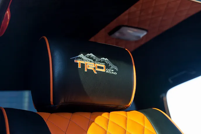 Engine performance mods are modest, with just an exhaust system from Flowmaster to give the orange Tundra a little extra juice and a great sound. However, since this is like most builds, a work constantly in progress, Navarro plans on more engine alterations in the near future.