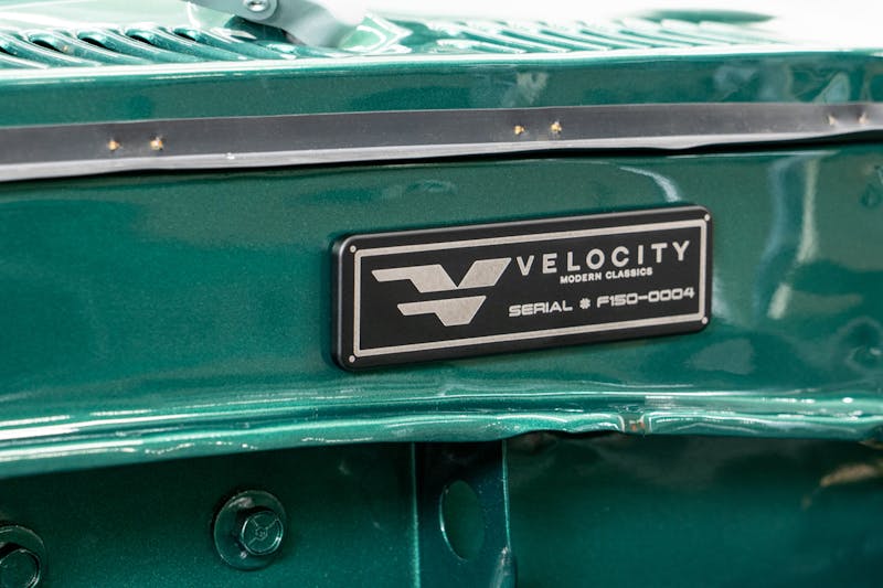 Inside, the F-150 and F-250 deliver the kind of refinement no one in the 1970s could have imagined. Custom bench seating, a Velocity-exclusive Dakota Digital gauge cluster, and premium audio from Focal transform the cab into a comfortable retreat. Vintage Air climate control keeps things cool, while billet-machined interior components and a leather-wrapped Sparc Industries steering wheel add a bespoke touch. In Heritage Series models, upgrades like an Alpine double-din head unit, backup camera, and premium stitched leather elevate the experience even further.