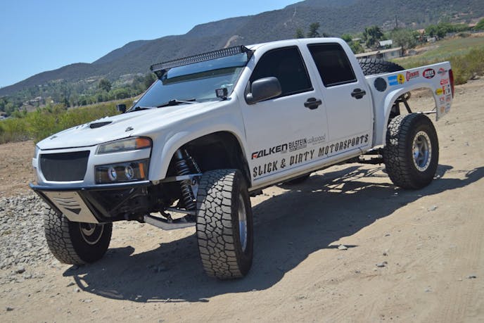 This Chevy prerunner has nice curves thanks to its fiberglass fenders and hood.