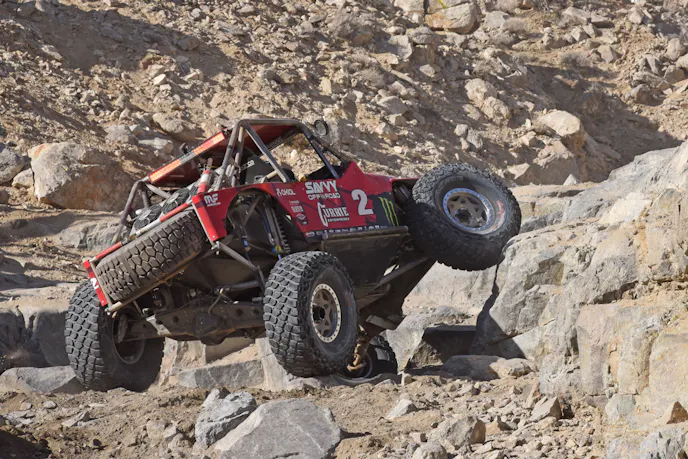 The 4400 Unlimited Class that features the premier rock racing vehicles in the event is made up of wild tube-chassis machines that frequently run powerful V8s, long travel suspension systems with multiple bypass reservoir shock absorbers, and 37- to 40-inch tires.