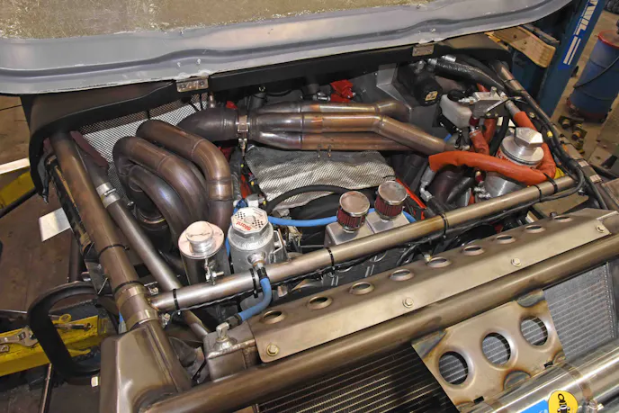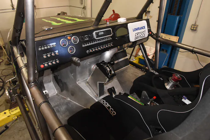 Starting with a chassis built by King Of The Hammers champ and extremely successful Ultra4 Racing Series contender Shannon Campbell, Currie dropped in a powerful 454 ci LSX V8, with a sturdy 4L80 four-speed automatic transmission behind it. A custom Magnaflow system takes care of exhaust duties. An Atlas transfer case (known for its bulletproof reputation) moves power from the transmission through custom JE Reel drivelines to a pair of modified Currie RockJock 70 axles.