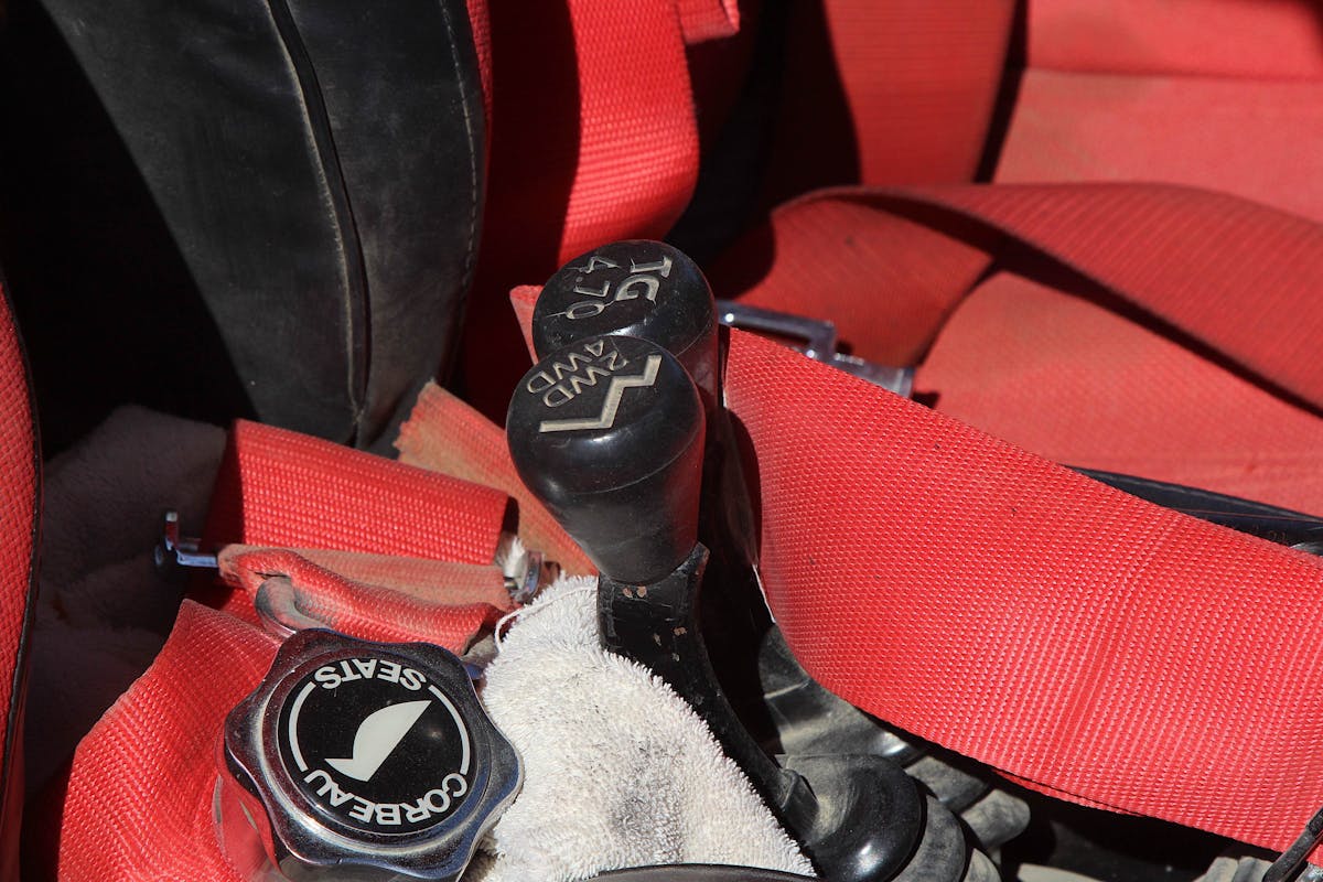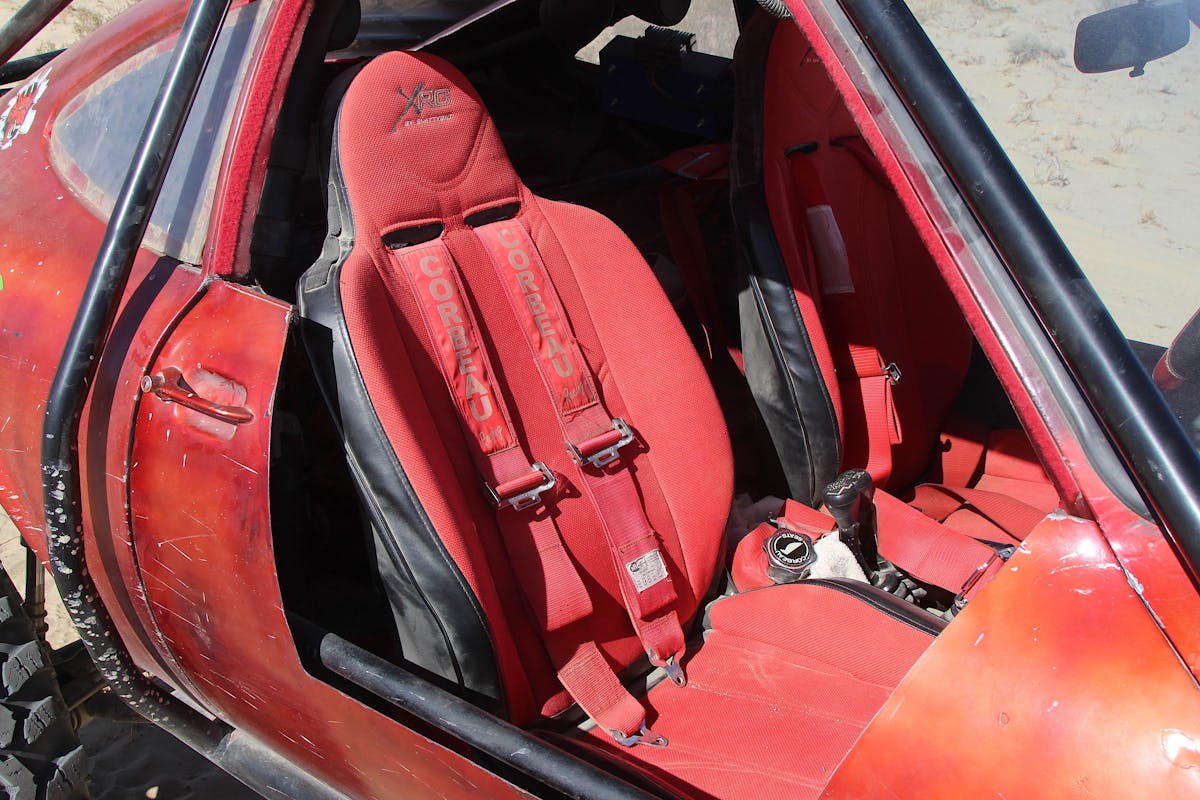 Inside the car, Chris and a passenger sit in a pair of Smittybilt XRC seats with Corbeau harnesses. A switch panel lets Chris activate a pair of ARB air compressors, which in turn activate air lockers front and rear, or allow him to reinflate the tires after a trail ride.