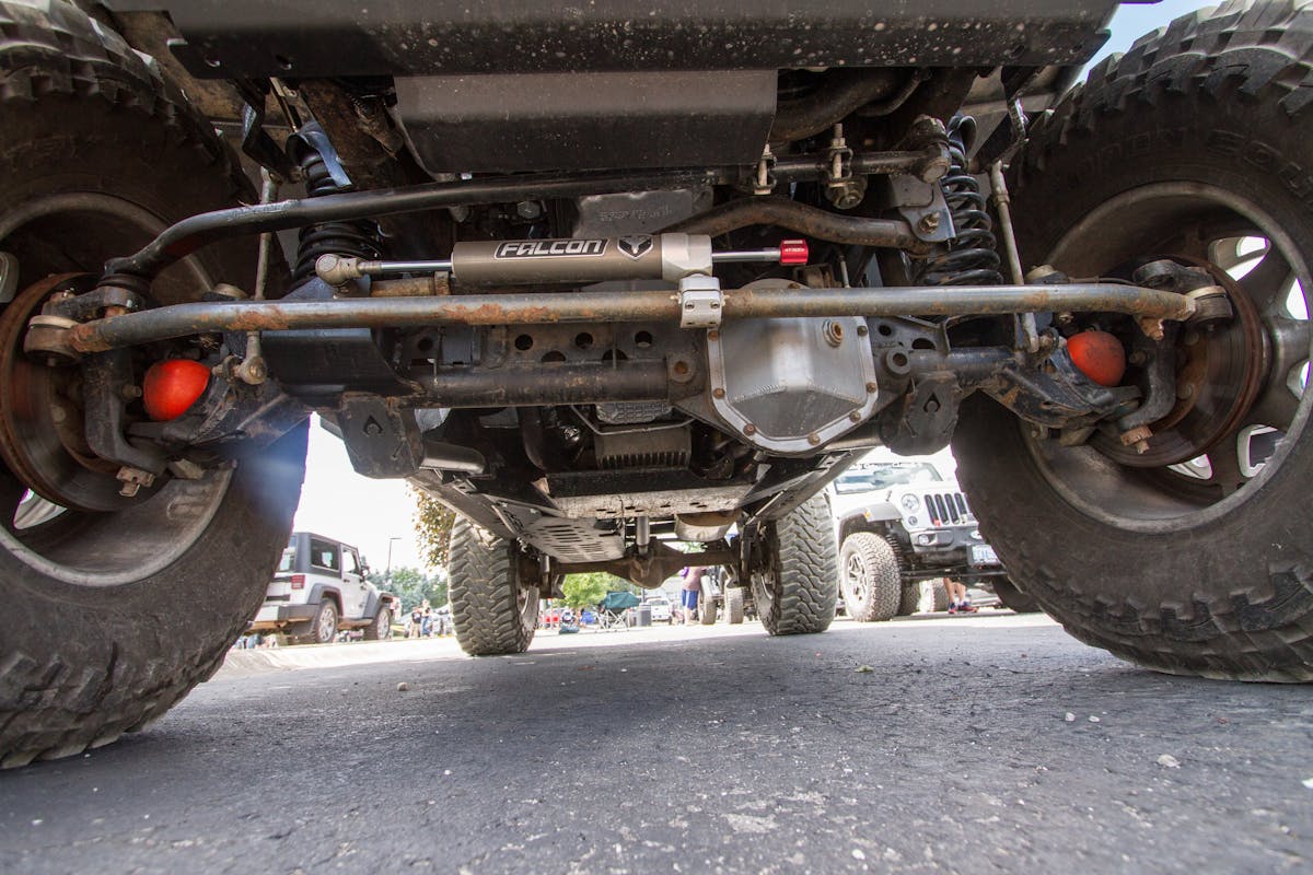 Everything is suspended under the vehicle with Falcon Series 3.3 adjustable shock absorbers. This pairs perfectly with the Teraflex 4.5-inch JK lift kit coils. Control arms, track bars, all brackets, and brake lines were also included in the kit. They were installed by Dakota Customs, and the result is a Jeep that sits very nicely.