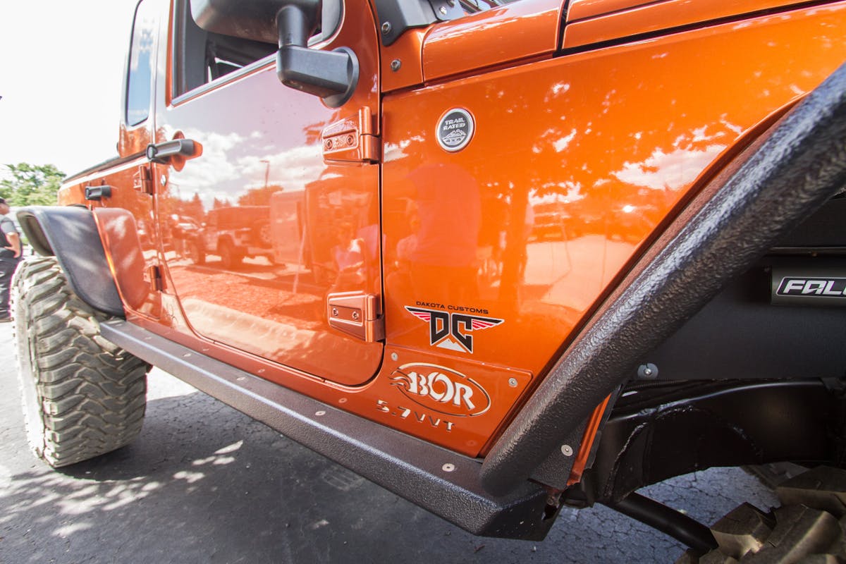 Almost everyone that owns a JK Jeep does a lift. Most also do bumpers, rocker protection, new wheels and tires, and auxiliary lighting. These kinds of upgrades are certainly a good thing. They increase performance and make the Jeep feel a little more personalized. The drawback is that they all start to look the same after a while. That’s one of the main reasons that the Mango Tango JK stood out to us.