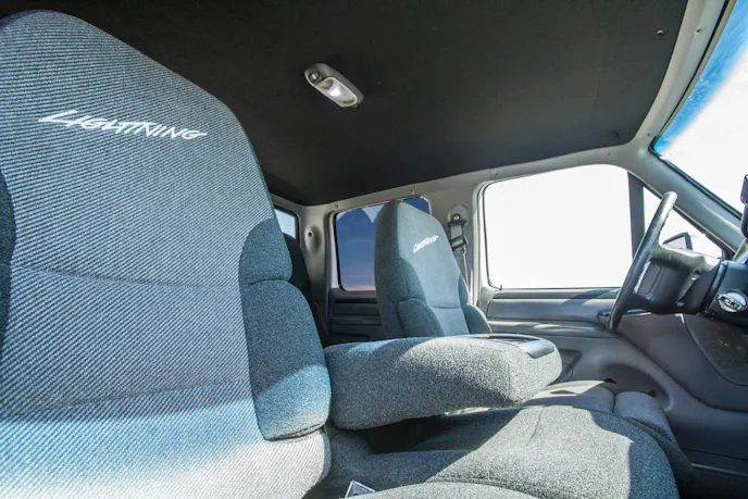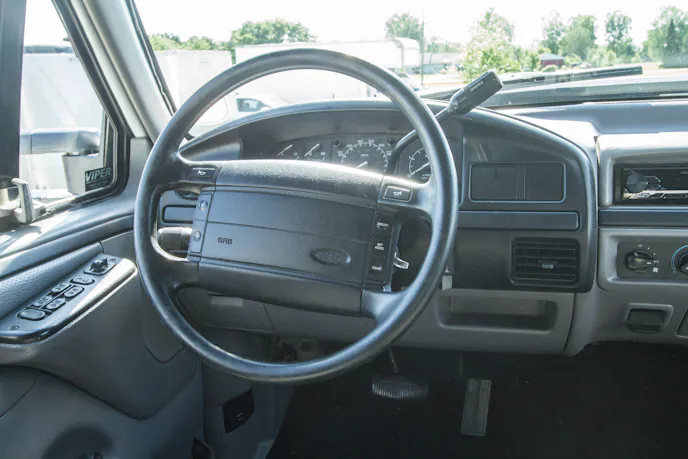 Keen eyes will spot some pretty unique interior choices. An example would include the first-generation 40/20/40 Ford Lightning seats front and rear. These seats are pretty rare and Doug gets a lot of comments on their use in the big F-350. There is also a brand-new black headliner and carpet. The power sliding rear window is a feature that took some doing to get. Doug had to scour local pick-a-part yards. Eventually, he was able to wrestle one out of a rusty, old work truck.