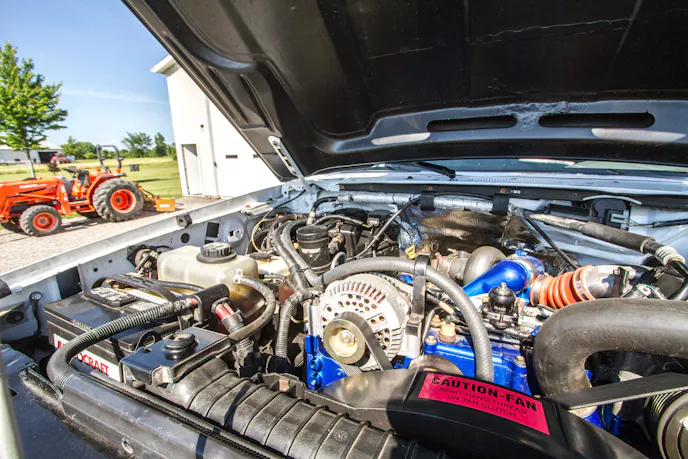 Doug started by adding 140cc split-shot injectors. From there, a 444 Fab Premium E Fuel kit and 140v modified injector driver module were added. These helped to maintain performance while not sacrificing reliability. A Power Hungry Performance Hydra chip (with custom tunes from 1023 Diesel) handles the calibrations.