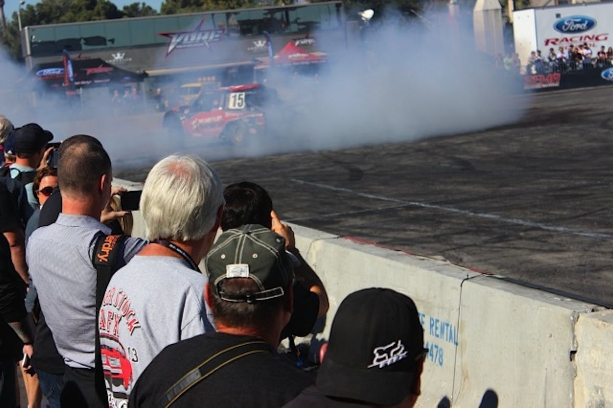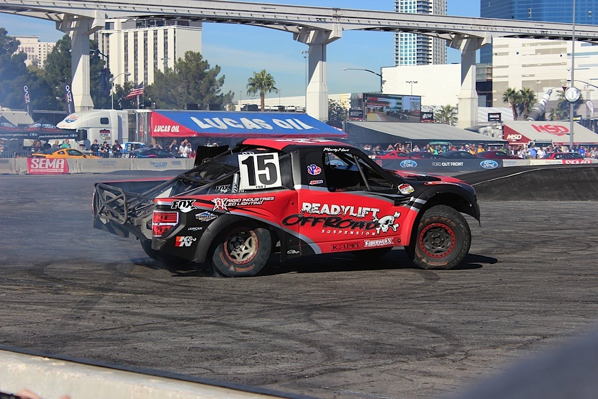 When traveling to the convention center this year, it was almost impossible to miss the ‘Ford Out Front’ display. Ford Out Front had a huge section of parking lot blocked off right in front of the convention center and in the middle of it all was a makeshift jump. Over the course of the week, various Ford vehicles gave demo drives and SEMA attendees could even wait in line and get a ride along in either a Ford Raptor or a 2015 Ford Mustang. The demos consisted of a lot of drifting, revved-out V8s, burned up tires, and smiles. Nearly every passenger we saw appeared to be elated at the end of their ride along – especially those who got to take flight, literally, in the Raptors.