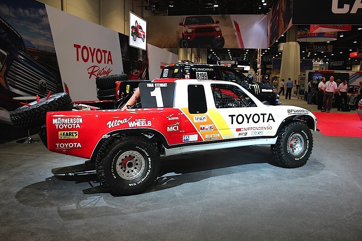 If you have been into off road for any length of time, this truck needs no introduction. Ivan Stewart, one of the legends of off road history due in large part to his solo-approach to conquering the Baja 1000, had his 1993 Toyota-powered T100 trophy truck on display at this year’s show. Featuring a center seat design, four wheel independent suspension, 3.5-liter V6, and a paint scheme that has become an icon in the world of off road, Stewart’s truck sat shining in Toyota’s booth.