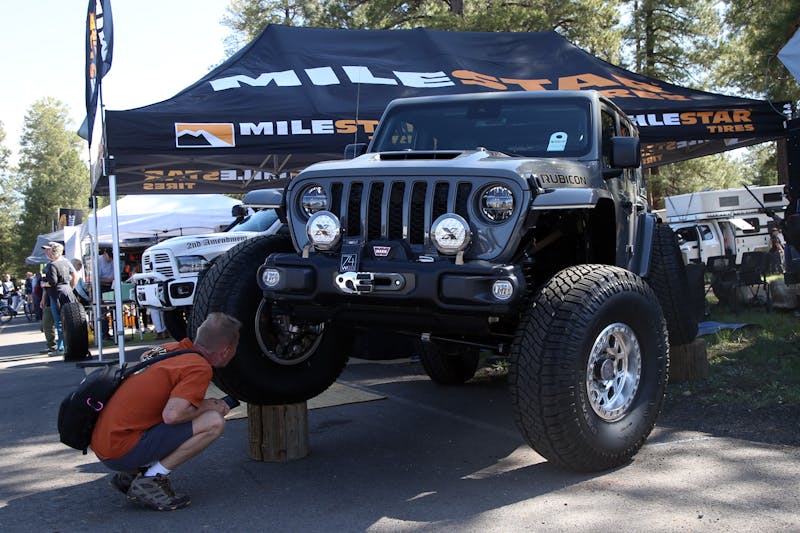 A Jeep Rubicon with 74 Weld Portal Axles at the Milestar Tires booth. The portal axles provide incredible ground clearance.