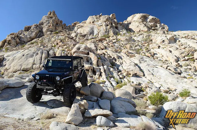 The Jeep was getting plenty of attention while it was displayed at the show, which made us more excited to see what it could do in the dirt, so Off Road Xtreme and Fabtech headed out to Cougar Buttes in the Johnson Valley OHV California’s Lucerne Valley.