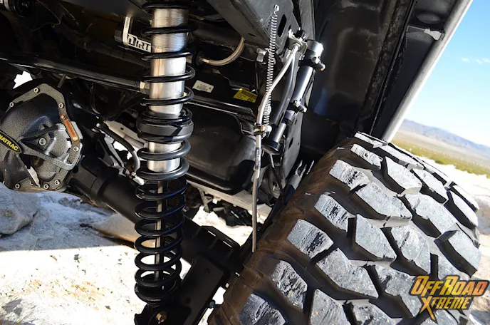 Having the ability to stop and to have control of the vehicle while it is going over rocks and on the trail is also crucial. Dynatrac HD F350 dual piston brake calipers with 13-inch vented front rotors and Dynatrac HD 13.9-inch vented rotors, with J8 disc brake assembly with emergency brake make sure that this 4×4 can stop on a dime and avoid slipping on the rocks, or other terrain.