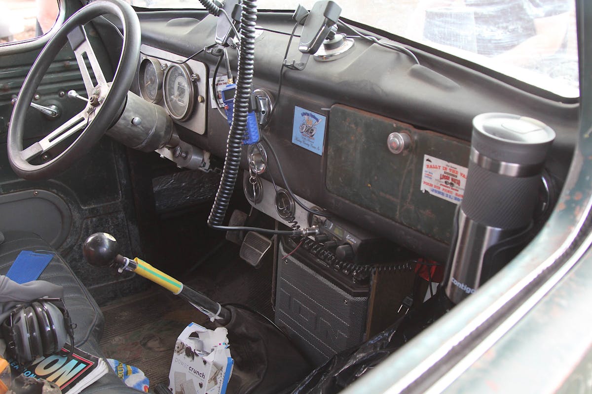 The motor is a 292 cubic-inch inline-six that has been bored over to a 301 cubic-inch engine. The transmission consists of a Chevy S10 and Camaro partnership that has operated flawlessly. The rear axle is from a Ford Falcon and is held in place by a four-link suspension with coilovers. Seth admitted, “They are racing struts on a rat rod that I jacked to the extreme to get ground clearance.”