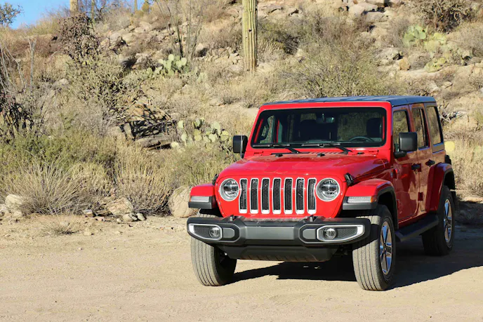 When it’s time to come to a stop, the Wrangler Sport uses 12.9-inch vented front and 12.9-inch solid back rotors. Sahara and Rubicon models rely on vented front brakes of the same diameter and 13.4-inch solid rear rotors to scrub off excess speed.