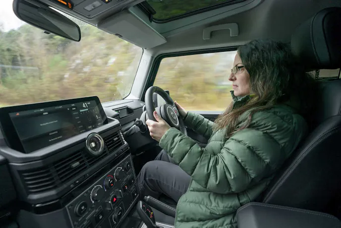 Though the steering has a slow ratio with 3.85 turns (lock to lock), it’s smooth and stable when navigating Scotland’s curvy country roads and exceptionally precise when off-roading. Although my focus was primarily on the Grenadier’s off-road attitude, its on-road feel is equally as important.