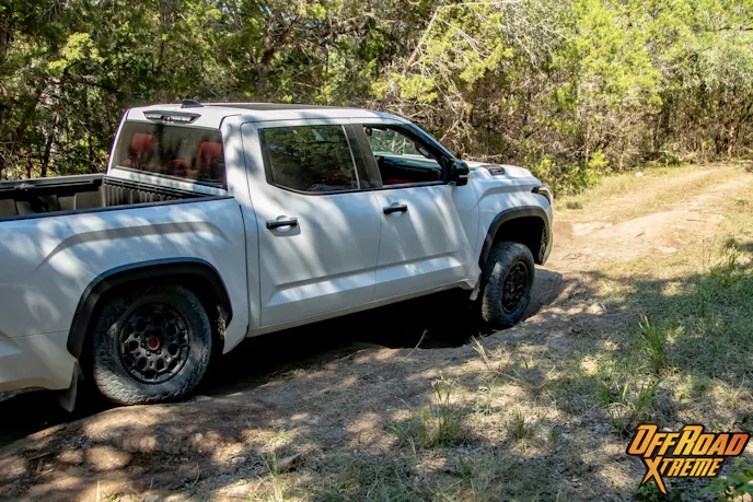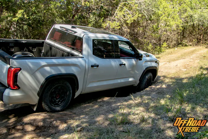 With one tire high in the air and usually only three in contact with the ground, the TRD Pro easily worked the section by controlling power and traction through its electronic locking differential. The series of offset mounds and ditches was a lot of fun teeter-tottering the truck around, but once again the TRD Pro ate it up and left me hoping to find a more difficult challenge. The only thing that could have made it perform even better was if it had an electronic swaybar disconnect.