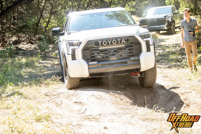 With one tire high in the air and usually only three in contact with the ground, the TRD Pro easily worked the section by controlling power and traction through its electronic locking differential. The series of offset mounds and ditches was a lot of fun teeter-tottering the truck around, but once again the TRD Pro ate it up and left me hoping to find a more difficult challenge. The only thing that could have made it perform even better was if it had an electronic swaybar disconnect.