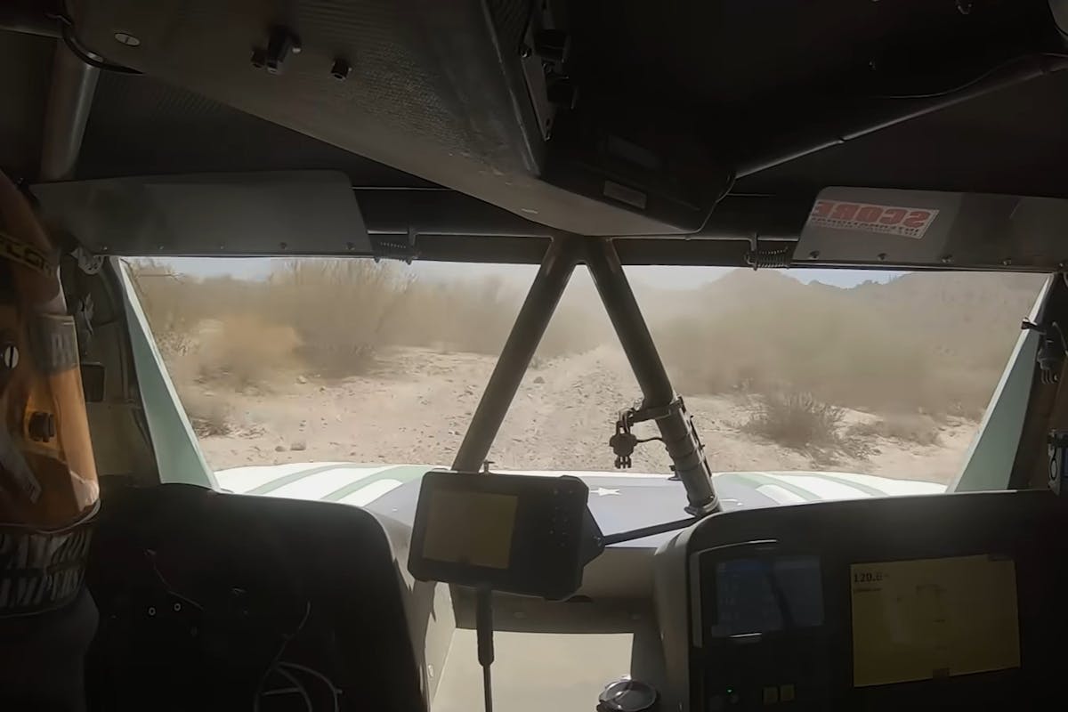 In his own words, he made “the biggest mistake of the race: I came into Zoo Road in second gear,” which meant he couldn’t get the truck on top of the brutal whoops section. Later, a wrong move landed the truck deep in soft sand—completely bogged down.