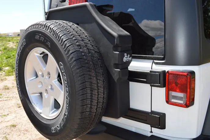 - Fits all stock and most aftermarket Wrangler tire carriers