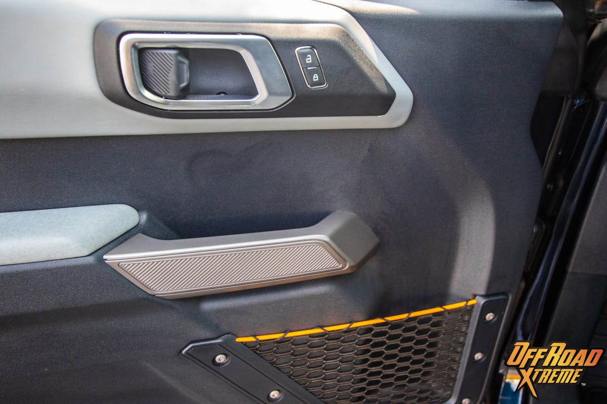 Built as a 4×4 trail ready off-roader, the new Bronco is built with rugged and durable materials inside and out. Large grab handles are found conveniently for both driver and passengers all around the vehicle. The placement in the front seats was a little low and somewhat physically awkward for my liking. Anywhere in the vehicle where you might find a composed vehicle function, besides the luxuriously feeling steering wheel and shift knob, presented a rubberized grip or a textured surface to help with operation.