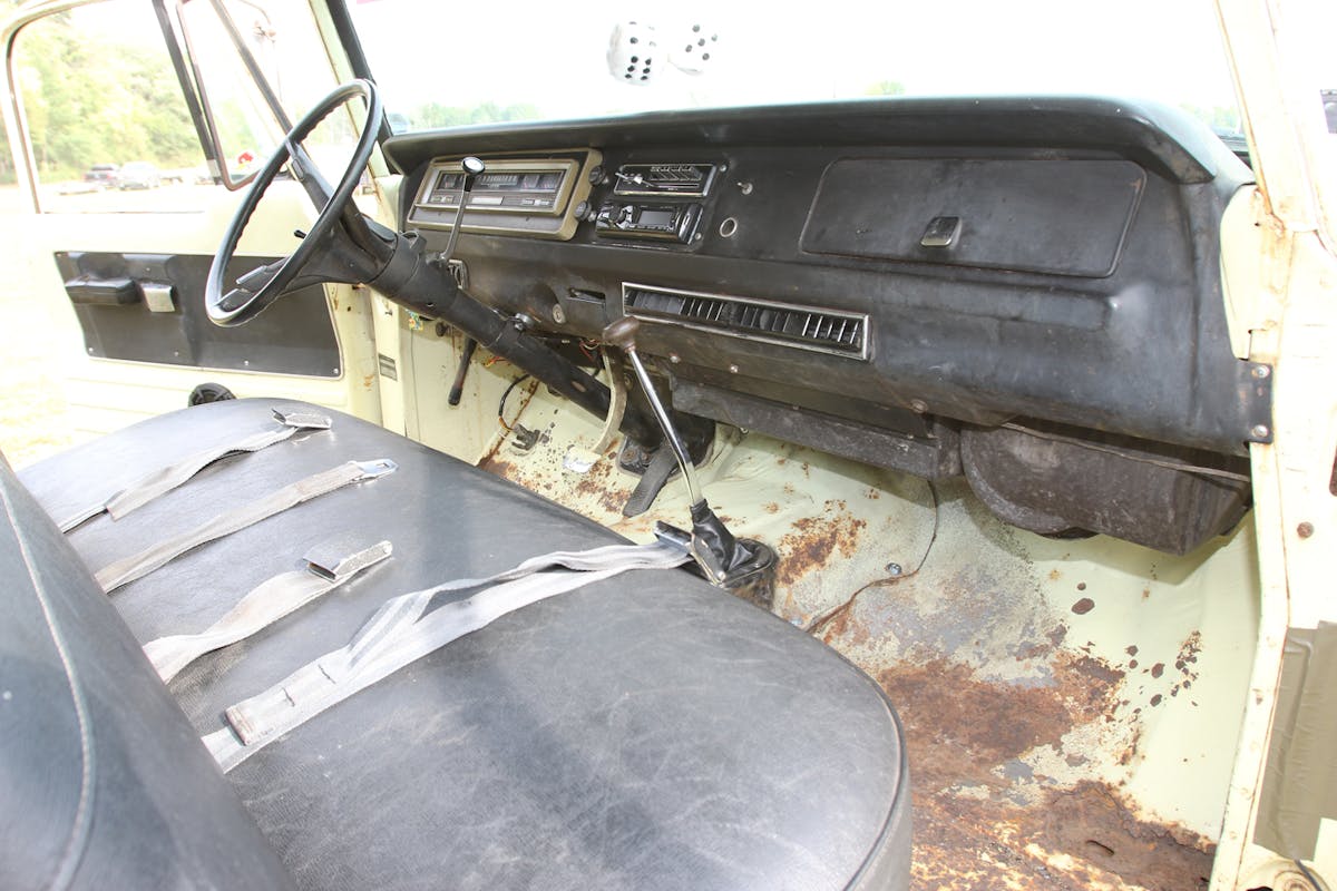 The truck they acquired is rare because it has factory A/C, power steering, and power brakes. Its 383-cubic-inch big-block engine ran well, but the transmission needed a rebuild. With the truck acquired, it was game on to create June’s first truck. We had a chance to photograph the in-process build at the 2025 Fall 4-Wheel Jamboree Nationals in Danville, Indiana.