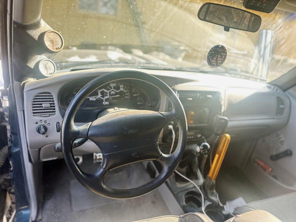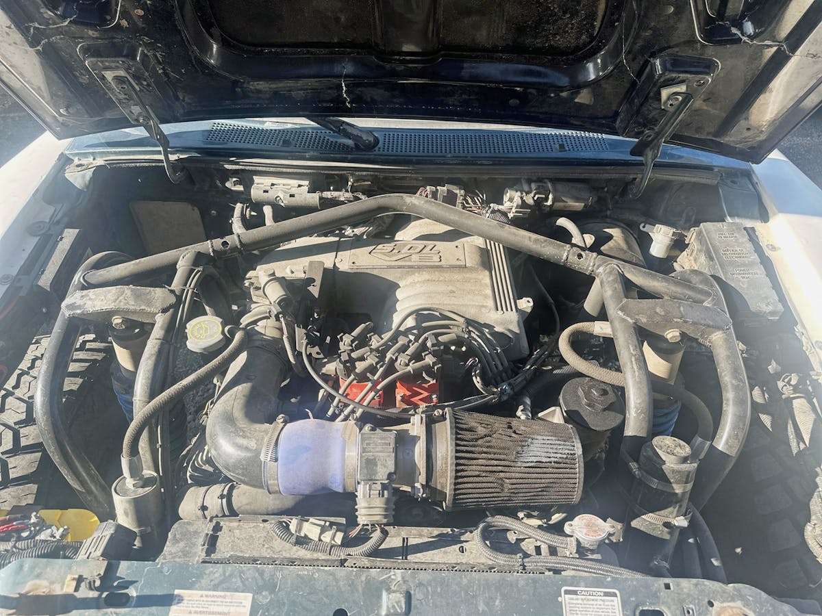 When Oliver purchased his Ranger, it had a tired 4.0-liter V6 engine. He wanted a more powerful ‘plant, so he pulled an SOHC 4.0-liter engine from a newer Ranger. Prior to installing the newer V6, he spent thousands of dollars on it—installing new head gaskets, timing chains, and so on. It ran great for around 300 miles, but then timing chain issues caused severe internal damage. That turn of events led Oliver to a 5.0-liter V8 swap, which is what powers the truck today. The fuel-injected engine was procured from a Mercury Mountaineer, and he notes it has GT40 heads.